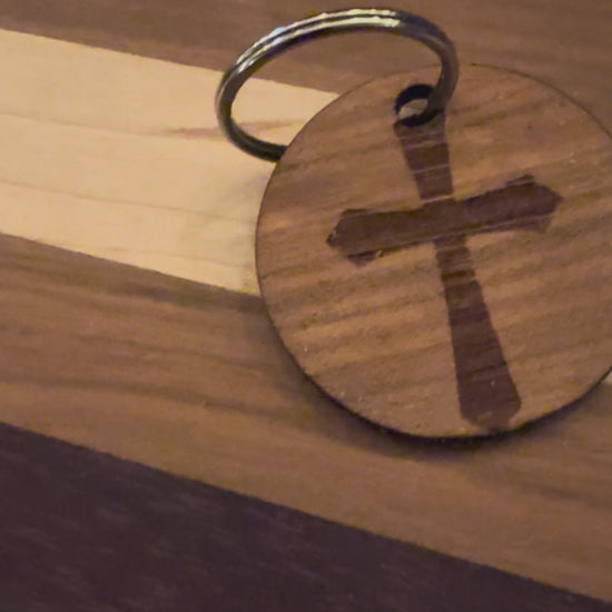 Crafted by hand from beautiful cherry wood, this engraved keychain features a sleek cross design. Perfect for adding a touch of elegance to your everyday routine. Made from quality materials, this keychain is sure to last and make a lasting impression.